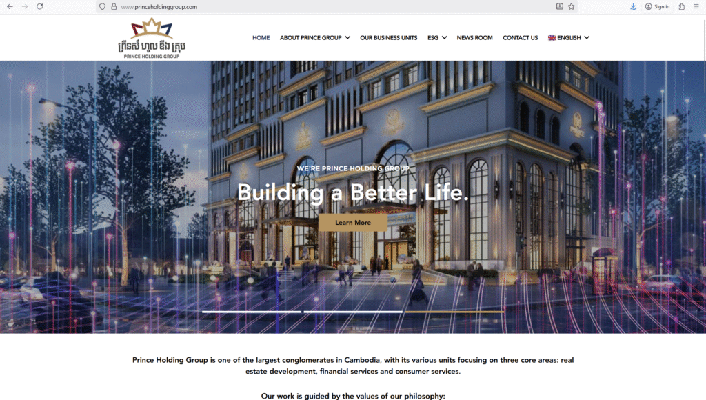 - The official website princeholdinggroup.com brands Prince Holding Group as one of Cambodia’s largest conglomerates, with business divisions in real estate development, financial services, and consumer services.