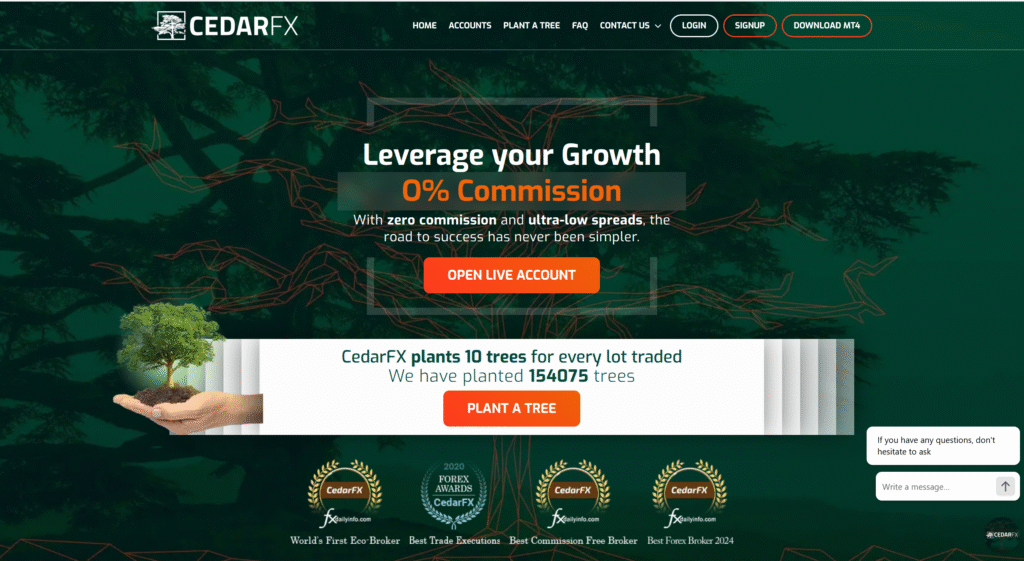 One of CedarFX’s most distinctive marketing angles is its promotion of environmental responsibility. It advertises that every $1 commission in its “Eco Account” is donated to tree planting and carbon offset programs. That branding as an “eco broker” serves to position itself as an upgraded, more moral alternative to typical brokers. But a green veneer does not guarantee financial integrity. When the moral messaging is used to override investor skepticism, it becomes a shield against scrutiny. The focus shifts from “is this broker safe?” to “isn’t this mission noble?” — and that distraction is precisely what powerful branding strategies exploit.