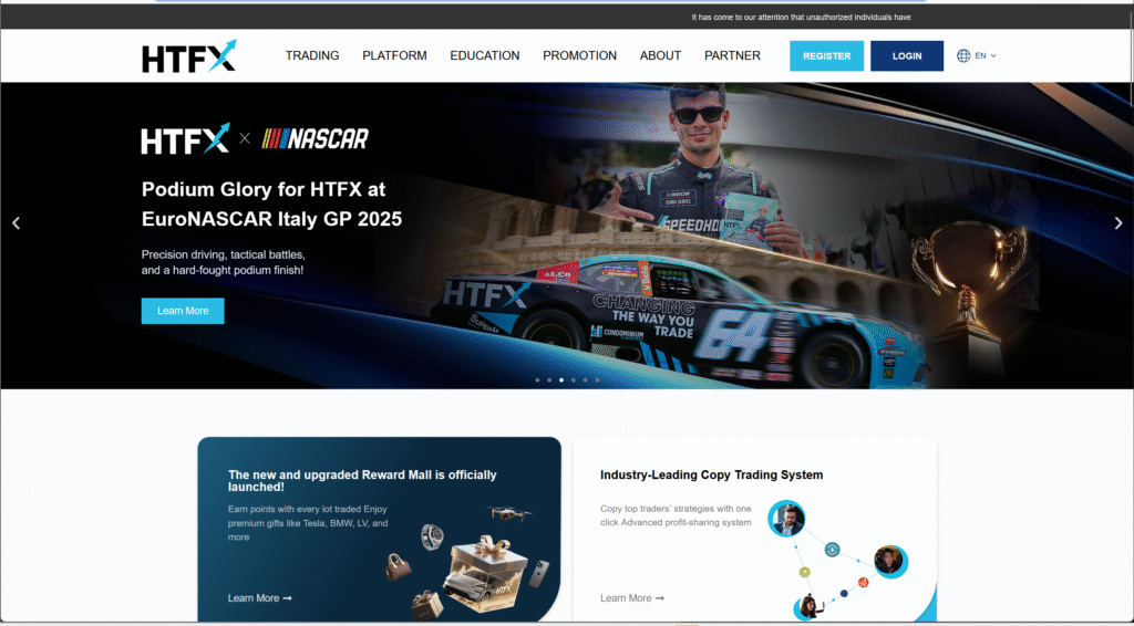 HTFX’s website assets trumpet awards, “global sponsorships,” and premium service.